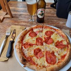 Unterwegs traf ich ein sehr sympathisches Pärchen, das gerade eine ziemlich epische Tour macht: über Albanien, Griechenland, Bulgarien, Rumänien – und dann weiter Richtung Mongolei. Inspirierend! Wir haben zusammen Pizza gegessen und ein Bier getrunken. Ich hatte Zeit, und es war ein richtig schöner Zwischenstopp.