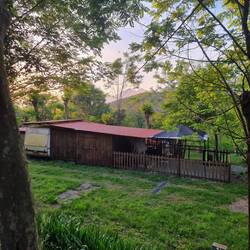 Am Morgen hatte ich mein Zelt klatschnass einpacken müssen, also hielt ich nach einer geeigneten Wiese Ausschau, um es zu trocknen und gleichzeitig eine kleine Mittagspause einzulegen. Ich hatte gerade einen schönen Platz gefunden, als ich auf einer Bank hinter einem Haus den Besitzer eines Hotels traf. Wir kamen ins Gespräch, und als ich ihm von meiner Reise erzählte, bot er mir spontan an, in einer Hütte an einem Teich hinter dem Haus zu übernachten.