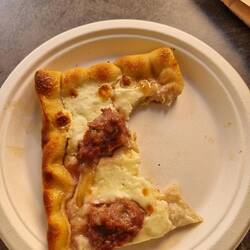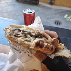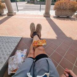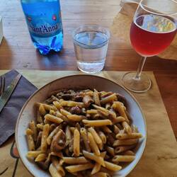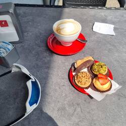 Ich machte eine Pause für ein zweites Frühstück – Cappuccino und ein paar Teilchen. Solange man noch in Italien ist, darf man sich sowas ruhig gönnen. Später gab’s dann Pizza aus einem kleinen Laden als Mittagessen.