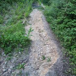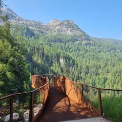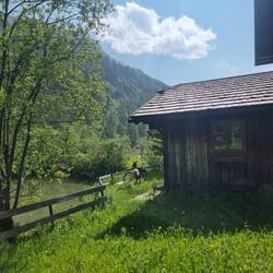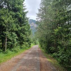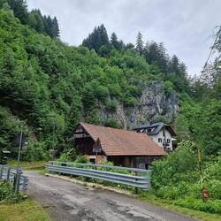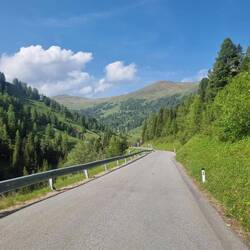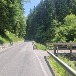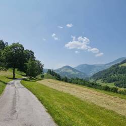 Nach dem Wasserfall bin ich vom ausgeschilderten Weg abgewichen und die Bundesstraße hinuntergerollt. Unten im Tal habe ich mich dann auf den Enzradweg begeben. Die Strecke war heute landschaftlich zwar nett, aber häufig direkt neben der Straße, durch das enge Tal leider laut. Dazu kam die Hitze, die mich ordentlich geschlaucht hat. Vielleicht auch eine Nachwirkung der vier Bier von gestern Abend...😇