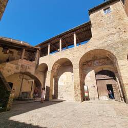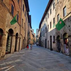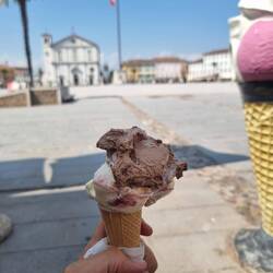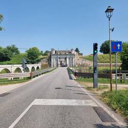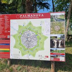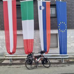 Kurz vor Udine kam ich noch durch eine alte sternförmig angelegte Festungsstadt – gut erhalten und sehenswert. Dort habe ich mir ein Eis gegönnt, direkt vor der größten italienischen Flagge, die ich je gesehen habe.