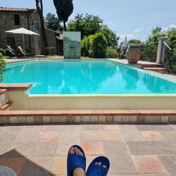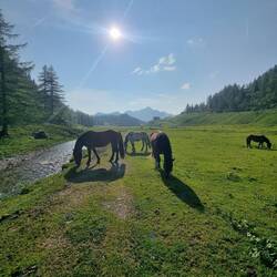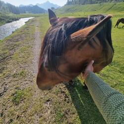 Die Kulisse ist traumhaft: direkt am Berg, direkt am Teich, in dem ich sogar schwimmen war, direkt an einer Pferdekoppel. Die Pferde haben sich streicheln lassen. In der Sonne habe ich dann ein paar Bier getrunken, mein Buch zu Ende gelesen das mir meine Eltern mitgebracht haben, und einfach entspannt