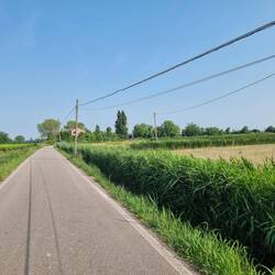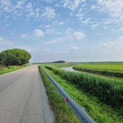 Dann ging es auf dem Alpe-Adria-Fahrradweg weiter durchs flache Tiefland, in Richtung österreichische Grenze – und damit langsam auf die Berge zu. Die Strecke war angenehmer als erwartet: Kanäle, Felder, viele kleine Brücken, und viel Wasser. Mir hat das gut gefallen. Die Po-Ebene hatte ich in nicht so guter Erinnerung, aber heute gab es viele kleine, hübsche Orte.