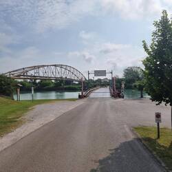 Was Thomas mir allerdings nicht verraten hatte: Der Weg dorthin war ein ausgewiesener Mountainbike-Trail. Warum er dachte, ich könnte den mit meinem voll beladenen Tourenrad und Straßenreifen bewältigen, bleibt sein Geheimnis. Jedenfalls wurde es abenteuerlich – besonders, als ich eine steile Leiter überqueren musste, die wohl für Wanderer und hartgesottene Mountainbiker gedacht war. Beim Absteigen bin ich prompt gestürzt. Und als wäre das nicht genug, landete meine Packtasche zielsicher im Stacheldraht. Zum Glück ohne Schaden – aber knapp war’s.