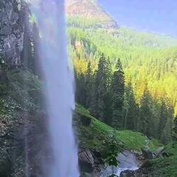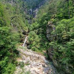 Heute hatte ich mir eigentlich eine entspannte Etappe hauptsächlich bergab vorgestellt. Aber Thomas hatte mir den Hinweis gegeben, dass es einen deutlich schöneren Weg entlang eines Wasserfalls gäbe. Den Namen habe ich leider vergessen, aber er war wirklich beeindruckend – rund 80 Meter freier Fall vor spektakulärer Kulisse.