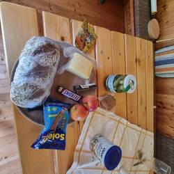 Also nahm ich das Angebot an – und was für ein Glück! Der liebe Thomas stellte mir sogar vier Bier in einen hölzernen Trog mit eiskaltem Quellwasser und brachte mir aus dem Jugendgästehaus, das er betreibt, Wurst, Käse und Brot vorbei – alles, was von der Wintersaison noch übrig war. „Musst du mir beim Aufessen helfen“, meinte er lachend. Ich hatte schon fast ein schlechtes Gewissen, so liebevoll wie er sich gekümmert hat.
