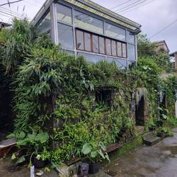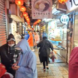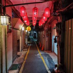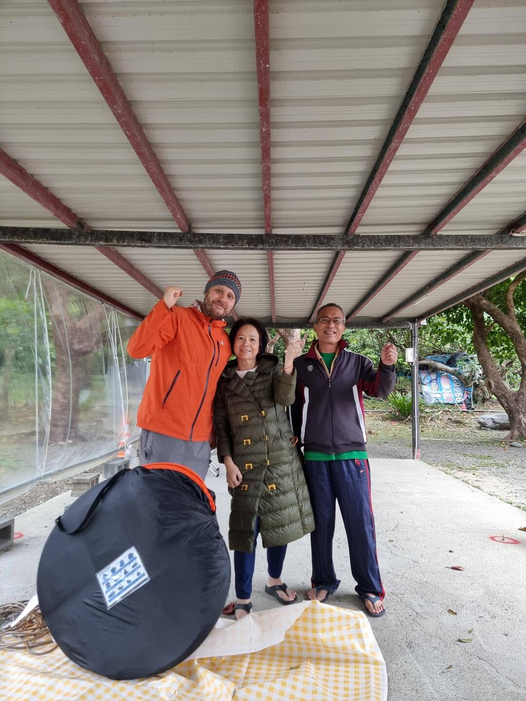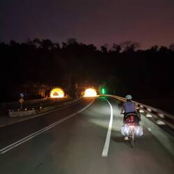 In diesem Tunnel konnten wir beim Fahren ein wenig trocknen. Dann auf der anderen Seite zogen wir uns auf dem Klo eines 7/11 trockene Klamotten an und setzten uns in einen Zug. Der fuhr aber nicht zu unserem Ziel, Jiufem dem taiwanesischen " Rothenburg ob der Tauber" 😅, sondern nur bis ins Tal darunter. Dort stürmte und regnete es immer noch. Wir lagerten unsere Fahrräder also bei einem geschäftstüchtigen alten Herren ein.