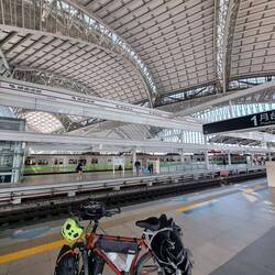 Man kann hier in Taiwan nicht an allen Bahnstationen mit dem Fahrrad einsteigen. Und natürlich war die nächste Station die Fahrräder annahm 30 km weiter 😪.