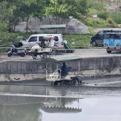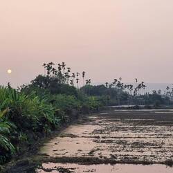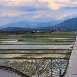 Da die Firma auch Kaffeeplantagen betreibt gönnten wir uns noch einen Cappuccino und warteten bis der Regen aufhört, dann ging es entlang von Kanälen zu unserem heutigen Ziel Jiaoxi.