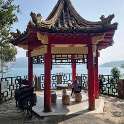 Der größte See Taiwans liegt auf 750m Höhe. Zum Glück hatten wir davon gestern ca die Hälfte gemacht. Trotzdem war die Aussicht aus der Haustür raus direkt ungefähr 380 Höhenmeter am Stück bergauf zu strampeln nicht so verlockend, also schliefen wir erstmal bis 10 😅.