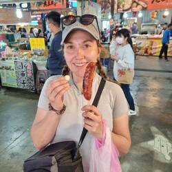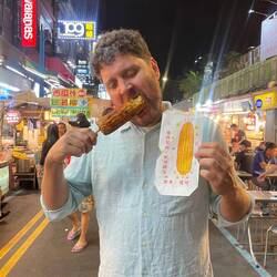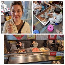 Abends in Hsinchu waren wir mutig und aßen auf einem Foodmarket in einen Tempel. Als erfahrener Weltreisender bestellte ich mit Händen und Füßen auf Bilder zeigend die Spezialitäten die alle anderen genossen, nur um dann festzustellen, dass der Besitzer sehr gutes Englisch sprach 😅, peinlich.