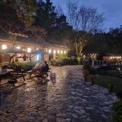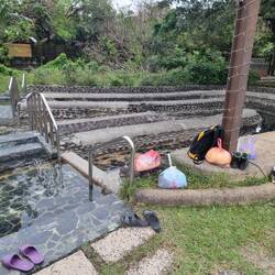 Die Quelle ist wunderschön in einem kleinen Wald gelegen und wieder getrennt nach Männlein und Weiblein. Also wieder alle nackig. Drin konnte ich deshalb leider keine Fotos machen, aber es war super schön! Acht verschiedene Becken jedes unterschiedlich temperiert, Sauna, Bonsai, Pavilions Bambuswald, echt toll!
