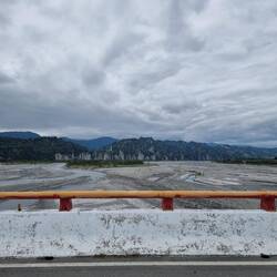 Wir stärkten uns im Seven Eleven, wo auf einmal das Internet wieder ging, planten die Route und fuhren los. Die Fahrt mit Blick auf die Berge war schon viel schöner als die Industrieromantik.