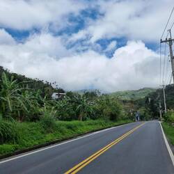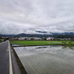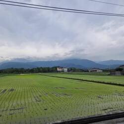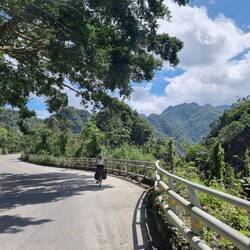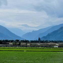Leider konnte ich anfangs in den schönen Reisfeldern kaum Fotos machen, da sich uns ein Rennradfahrender Amerikaner aufdrängen musste. Er wollte sichergehen, dass wir den Weg finden. Meine Einwände, dass wir ein Navi haben wurden ignoriert. Das Navi ist doof, er weiß es besser! So führte er uns permant schwätzend viel zu schnell fahrend ( wir konnten und wollten sein Tempo nicht halten, konnten und wollten aber auch nicht unhöflich sein) auf exakt der Route die das Navi vorschlug🤨. Auf der A14 traute er uns den Weg alleine zu. Endlich. Die Straße schlängelt sich wunderschön durch die Berge, aber die Höhenmeter merkten wir schon😅.