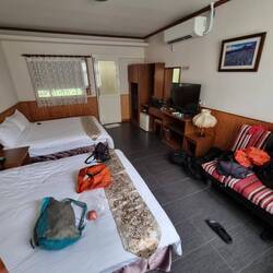 Am Zielbahnhof angekommen machten wir leckere Mittagspause und nahmen den Zug um das letzte gefährliche Stück zu überbrücken. Dann radelten wir die letzten 12 Kilometer nach Luodong wo wir endlich unseren ersten ganzen Ruhetag einlegen werden. Das Timing ist gut, morgen soll es Gewittern. Das Hotel ist sehr schön aber leider war im ersten Zimmer Schimmel hinter den Vorhängen und dem Fernseher. Wir durften aber ohne Probleme Zimmer wechseln. Johi und ich waren uns einig: Meine Mutter würde nach einem Zimmerwechsel fragen. Und man muss sich trauen freundlich zu fragen. Danke für das Vorbild Mama!