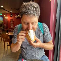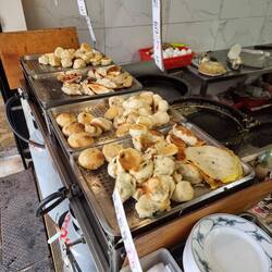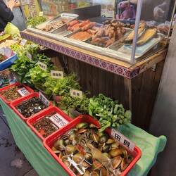 Ohne Internet eine Unterkunft finden war schwierig. Es half das Kaffe 89 mit tollem Kuchen und Wifi. Nach dem Checkin gingen wir noch auf eien Foodmarket. Diesmal hat es auch Johis Geschmack getroffen.