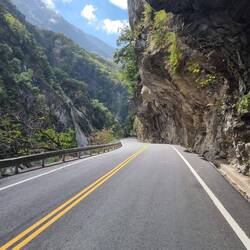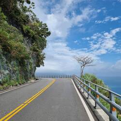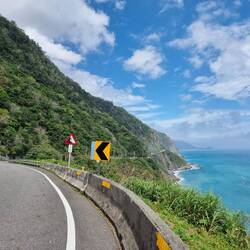 Der Suhua Highway verläuft entlang einer spektakulären Steilküste auf unserem Weg nach Taipeh. Lange war er die einzige Verbindung Richtung Norden und sehr stark befahren, vom Schwertransport bis zum Motorroller. Er hatte den Ruf sehr gefährlich für Radfahrer und Motorroller zu sein, und die Regierung riet lange davon ab diesen Teil der Taiwanumrundung mi dem Fahrrad zu fahren.