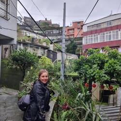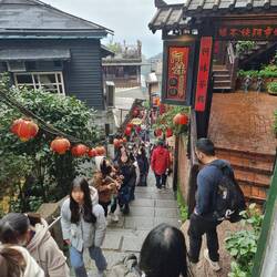 Dann in den rappelvollen Bus nach oben. Und dort durch die rappelvolle "old street" über hunderte Treppen (Jiufen besteht aus einer Altstadt am Hang fast ohne Straßen) in die hinterste Ecke zu unserer schönen, aber sehr versteckten Unterkunft. Das alles mit meiner Erkältung, die durch alles bestimmt nicht besser geworden ist😑.
