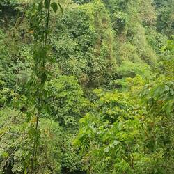 Start mit Kleingruppe ( 1 US Paar aus Kansas und wir plus Guia Jose) um 8h mit SUV. Die Fahrt zum Rainmaker Forest jetzt bei Tag. Die Palmölplantagen wirken nur gering weniger düster.Über Stock undLeia mais