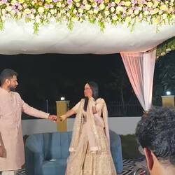 Wir wurden vom Brautpaar herzlich empfangen. Die Braut Arunima, kommt ursprünglich aus Kerala, lebt jetzt aber in Sydney. Ihr Partner, Vinit, lebt in Kerala. Matthias hat Arunima om 2017 in Auroville, Indien, kennen gelernt, wo sie einen Hypnotherapie Kurs besuchten. Wir haben uns mega gefreut, dass sie uns nun an ihr Hochzeit einladen.