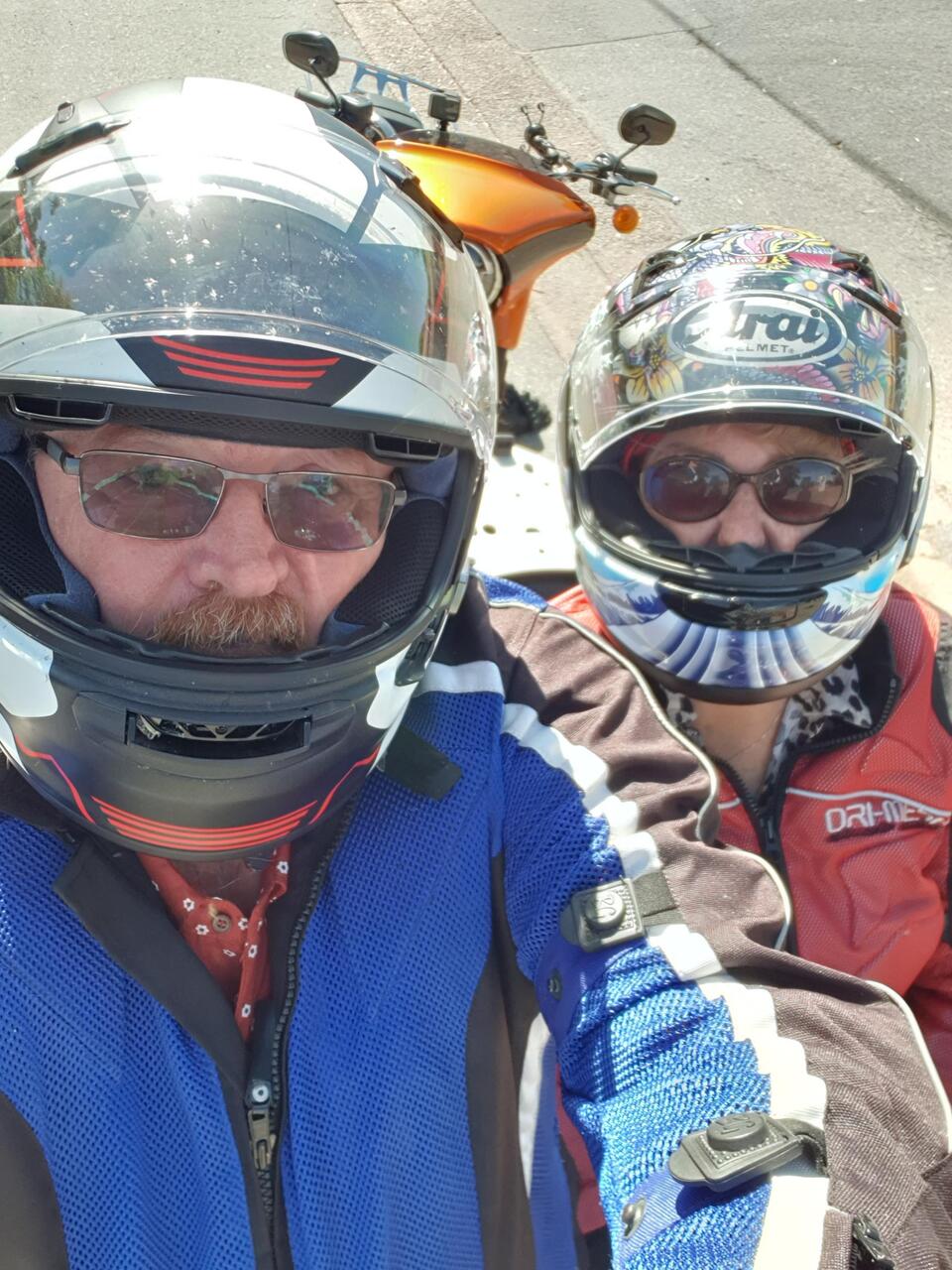 Near One Tree Hill. Cruising up around Baroossa Valley with Jake, Maddie, Kathy and myself. Got our new Sena 50 helmet communicators working great. So much better than our old ones. Super clear. NoLeggi altro