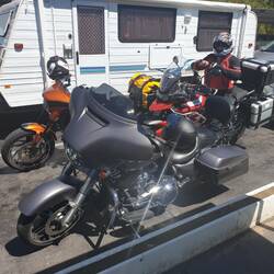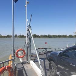 The tight confines of the ferry parking resulted in Jake almost tipping Kath over and scratching his bike when we went to depart the ferry. He was all happy about our ferry ride over the Murray riverLeggi altro
