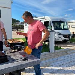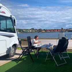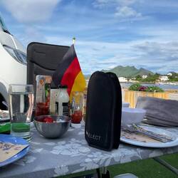 Heute einkaufen in Leknes Buskens Kyrke besuchen und dann nach Ballstad Reineholmen Fußball schauen ( leider eine nicht verdiente Niederlage des Deutschen Teams. Morgen soll es heftig regnen, alsoLeggi altro