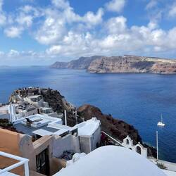 Wir sind mit Tenderbooten vom Schiff an Land gebracht worden. Dort stiegen wir zunächst in einen Bus, der uns nach Oia brachte ( der Zwischenstopp auf dem Profitis Ilisa, dem höchsten Bergもっと詳しく