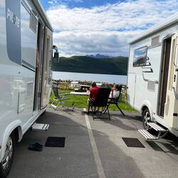 Nach 3000 km haben wir Norwegen erreicht. In Evenskjer haben wir unseren Schlafplatz aufgeschlagen. Direkt am Wasser und sehr ruhig.