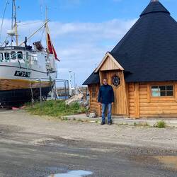 Heute Sonnenschein und kurze Strecke. Unterwegs die älteste nördlichste Steinkirche ( Trondenes Kyrka) angeschaut.