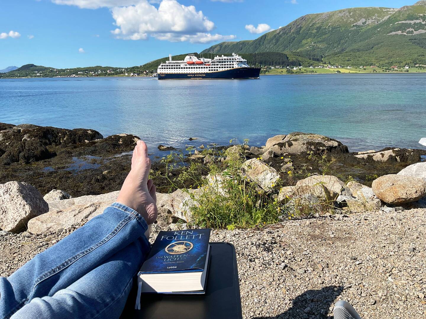 Heute einkaufen in Leknes Buskens Kyrke besuchen und dann nach Ballstad Reineholmen Fußball schauen ( leider eine nicht verdiente Niederlage des Deutschen Teams. Morgen soll es heftig regnen, alsoLeer más