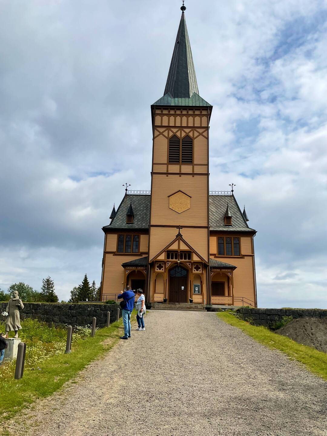 Erster Stopp Lofoten Kathedrale. Es ist die größte Holzkirche Nordnorwegens verfügt über 1200 Sitzplätze und wurde 1895 erbaut. Vorher standen an gleicher Stelle vier oder fünf andere Kirchen.Leer más