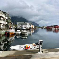 Unsere vorletzte Station ist das Örtchen Reine. Hier ist der Ortskern eher unspektakulär. Hier zählt die Lage. Umgeben von schroffen hohen Bergen liegt das Dorf mit eigenem Hafen und natürlichLeer más