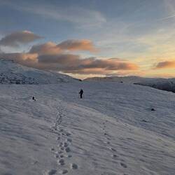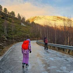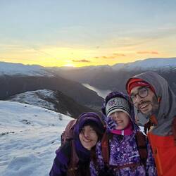 Da qui iniziamo l'ascesa del Prest 1340m sul Aurlandfjord che offre una vista spettacolare , un ambiente glaciale unico montiamo la ferraglia ai piedi e risaliamo la montagna !il vento è contro di noi ma noi non molliamo.