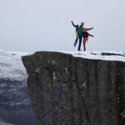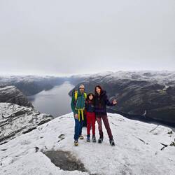 Escursione a preikenstolen fjord vicino a stavanger , escursione facile per la prima metà, un po impegnativo il restante essendoci ghiaccio, necessari ramponi per prodeguire l'ascensione.