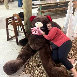 mom won that windbreaker, we took a truck tour, and hung out with teddy the dog!