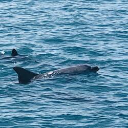 Delphin Fütterung, die Delphine kommen zwei bis drei Mal täglich.