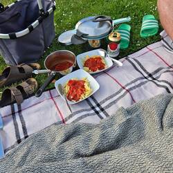 Und wieder Sonnenschein. Also erstmal wach werden und ganz in Ruhe frühstücken, unser Stellplatz lädt ja förmlich dazu ein.