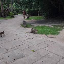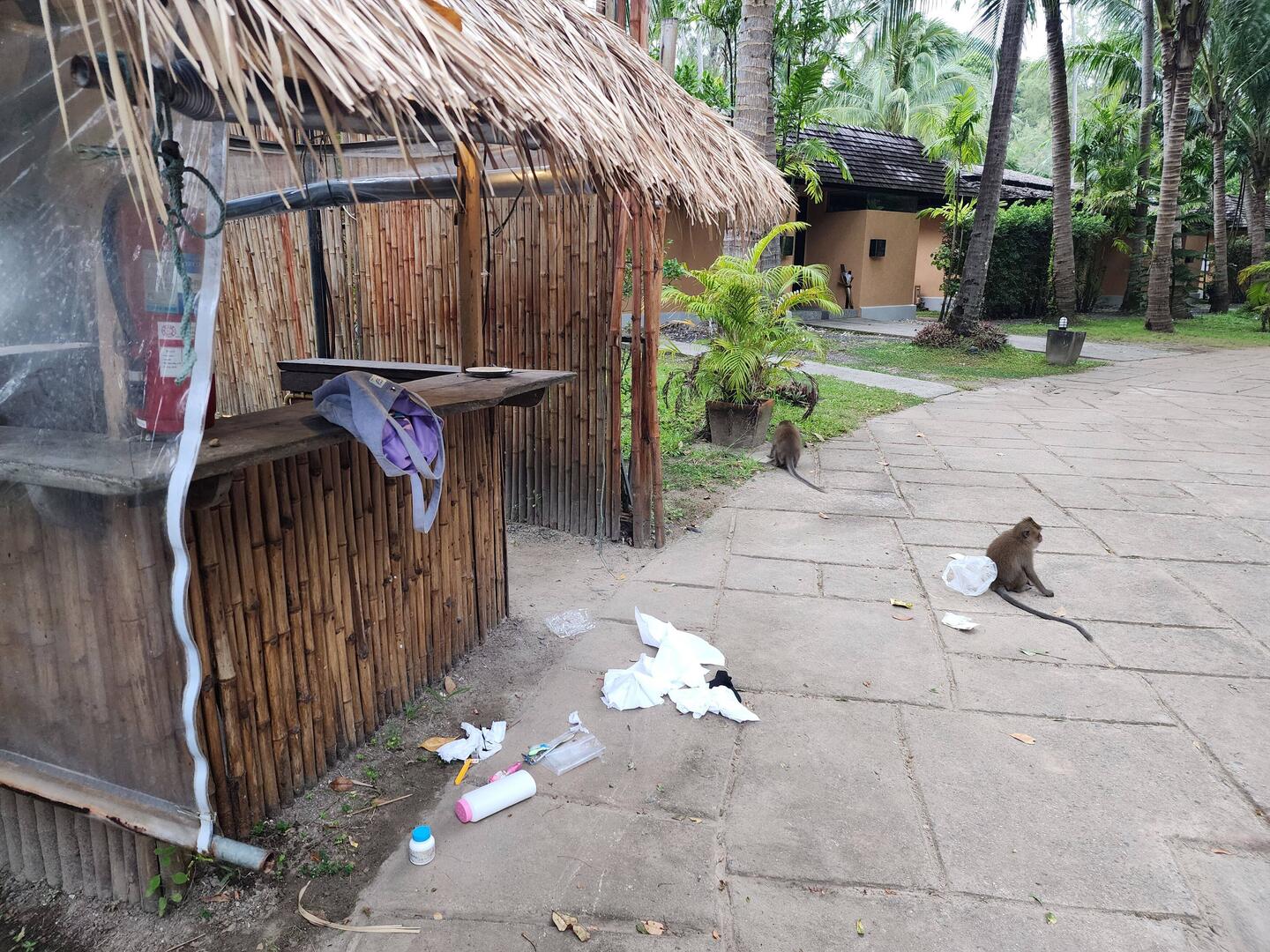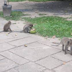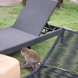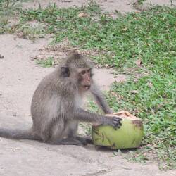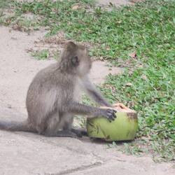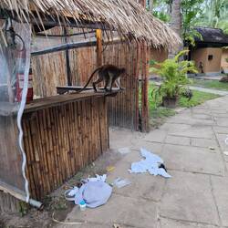 Die kleinen frechen Affen Thailands, beliebt bei Touristen, eher genervt bei den locals... Hier haben sie nicht nur die Kokosnuss geklaut, sondern auch den kleinen Wachposten am Hotel / Pool EingangRead more
