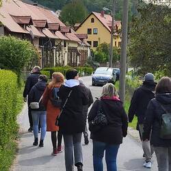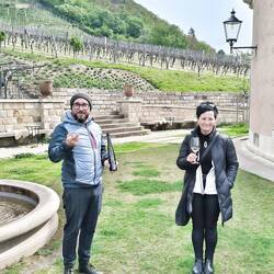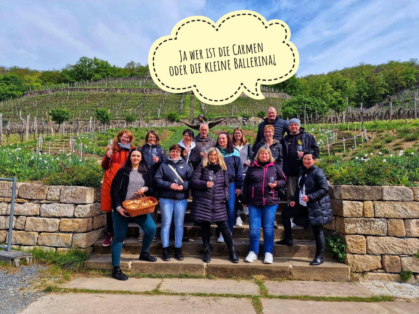 Der Bus hielt dann am Schloss Pillnitz und es ging per Fuß zum Weingut weiter,