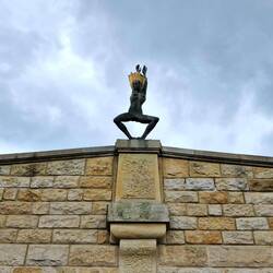 Selbst die Skulptur auf dem Gebäude ist ein "Brunnen"