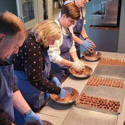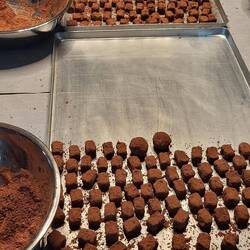 Ein Spaß für alle war das Kugeln der Ganache in einer Kakao oder Fruchtmischung