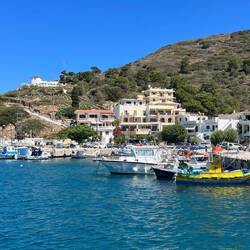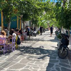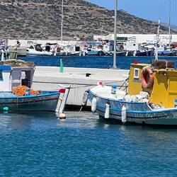 Der Ort Fourni war dann auch recht hübsch, am kleinen Fischereihafen gönnten wir uns einen eisgekühlten Frappé. Was im Internet als „große Fischreiflotte“ bezeichnet wird entpuppte sich allerdings nur als eine mittlere Anzahl z.T. recht kleiner bis winziger, aber sehr wohl hübsch bemalter, Fischerbötchen.