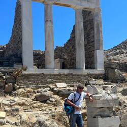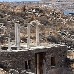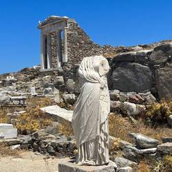 Auf der winzigen Nachbarinsel von Mykonos kann man auf einem riesigen Gelände mitten durch Heiligtümer und einige Statuen einer enormen griechisch-römischen Siedlung wandern.