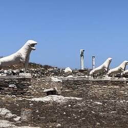 Die originalen Ausgrabungsstücke sind im wohl sehr bedeutenden Delos-Museum auf dem Gelände untergebracht. Dieses ist aber seit 2 Jahren wegen Renovierung geschlossen und soll frühestens nächstes Jahr wieder dem Publikum zugänglich sein. So konnten wir die Original-Löwen leider nicht besuchen.