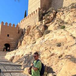 Eine kleine Erfrischung gönnten wir uns mit Blick auf die Festung im „Café-Bar Mirador de la Alcazaba“. Es gab leckere Tapas, Bier, Capucchino, und für Uwe einen Crêpe mit Nutella (1 Tapa mit 1 Getränk 4 Euro). Unbedingt einen Besuch wert ist sie, die ehemalige maurische Festung Alcazaba. Sie wurde im 10. Jahrhundert von einem maurischen Kalifen erbaut und bis ins 15. Jh von muslimischen Statthaltern genutzt. Die gesamte Anlage ist sehr weitläufig und nach der Alhambra die zweitgrößte maurische Festung Spaniens. Der Zustand des Gebäudes ist sehr gut, natürlich wurde viel renoviert, und kaum etwas ist wahrscheinlich original. Für EU-Bürger ist der Besuch übrigens umsonst. Uwe meinte, wir hätten die Instandhaltung als EU-Bürger eh schon zur Genüge mitfinanziert…. Schmunzel, schmunzel. Interessant war auch ein Grüppchen von Archäologen.innen (😂) zu beobachten, die im aktuell abgesperrten Bereich sorgfältig nur mit großen Bürsten als Werkzeug an Mauerresten herumkehrten.