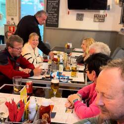 Speziell herzlich verabschiedeten wir uns von Micha & Axel beim Kaffeetrinken und Kuchen und später mit ein paar „Kurzen“ noch bei uns auf dem Boot.Les mer