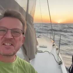 Dieser Tag begann nicht so schön. Die Wellen hatten sehr zugenommen und unser Boot schlingerte teils ganz schön hindurch. Um draußen nach dem Rechten zu schauen strebte ich ins Freie. Ein paar Schuhe lagen im Weg, ein falscher Schritt zur Seite, und meine Zehe machte abrupt Bekanntschaft mit dem Türrahmen 😖… Normalerweise lässt der Schmerz bei sowas bald nach, dem war aber diesmal leider nicht so. Erst eine Schmerztablette brachte Linderung, zumGlück kam Doris gleich zur Wachablösung.