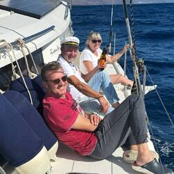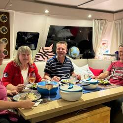 Von Las Palmas aus fuhren wir am 25.9. mit dem Leihwagen quer über die Insel um unsere Leipziger Freunde Lutz und Jana in Puerto Mogán zu besuchen, die dort seit einigen Wochen auch mit einer Helia die Gegend unsicher machen und Chartergäste mitnehmen. Es war ein sehr netter Nachmittag mit Gesprächen bei Eis und Kaffee, und zu guter Letzt wurden wir noch zum Abendessen an Bord eingeladen: einer der Gäste, Michael, zauberte mit dem Wok ein überaus leckeres Gericht mit viel Gemüse und Hähnchenfleisch für 7 Personen hin! Da waren wir sehr beeindruckt.