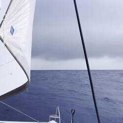 Die 380er Lagoon, die wir schon einige Zeit verfolgen, fällt nach Süden vom Kurs ab, ein weiterer Kat folgt uns. Was mich wundert ist, dass er nicht an uns vorbeizieht. Es handelt sich um eine Outremer 45, ein Performance Kat, der uns vom Potential her locker überholen könnte. Ich segele derweil hart am Wind mit 43° zum Wind, um direkt ohne Wenden in unserer Bucht anzukommen. Auf der halben Strecke zwischen St. Vincent und Bequia lässt die Strömung nach und wir kommen mit knapp 7 Knoten wieder gut voran. Plötzlich sehe ich, wie ein Boot auf uns zukreuzt, es ist die Lagoon, welche nicht so hoch am Wind gesegelt ist. Sie reiht sich weit hinter uns ein und folgt uns dann in die Bucht. Auch die Outremer segelt nicht mehr an uns vorbei, wieder eine Regatta gewonnen 🤭.Leer más